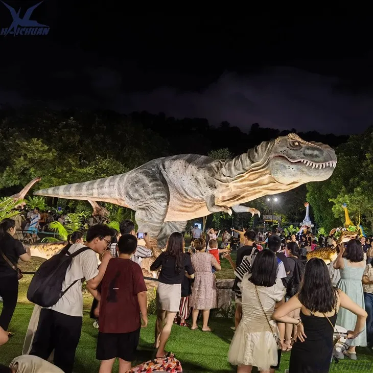 Acesta este un model uriaș de Tyrannosaurus Rex lung de 12-metri și îl facem totul manual, așa că este nevoie de 25-30 zile pentru a crea un dinozaur. Acest Tyrannosaurus Rex folosește un servomotor mai bun, astfel încât mișcarea poate fi controlată mai precis.